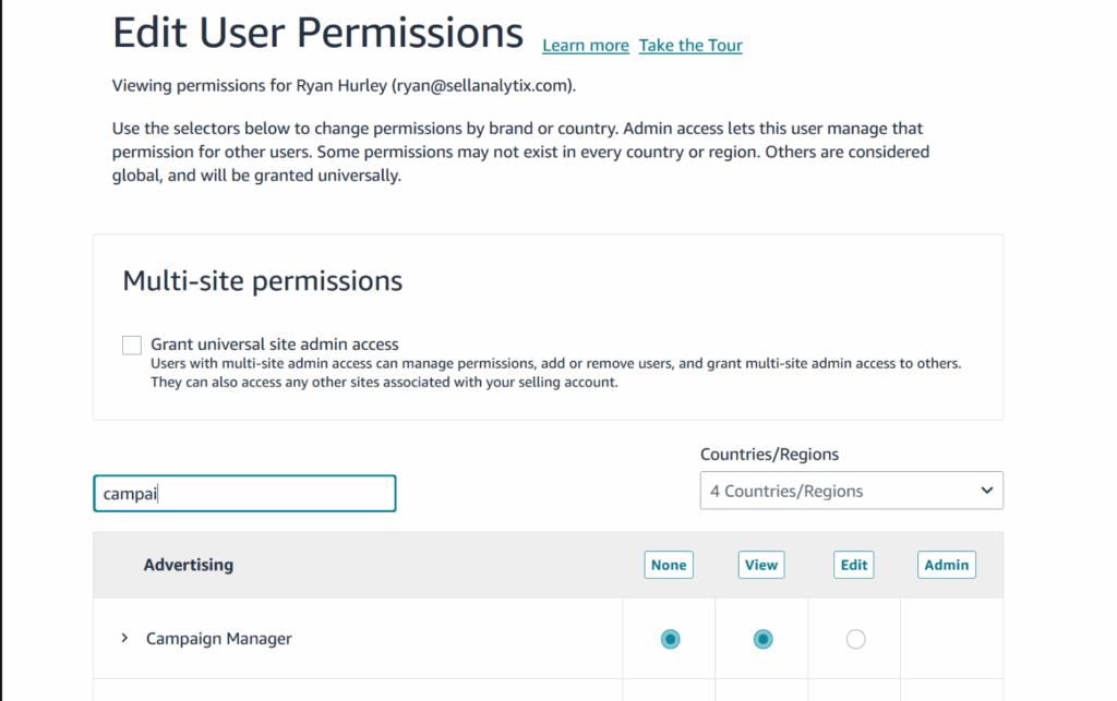 Step 8: Permissions (Campaign manager view + Payment Report edit)